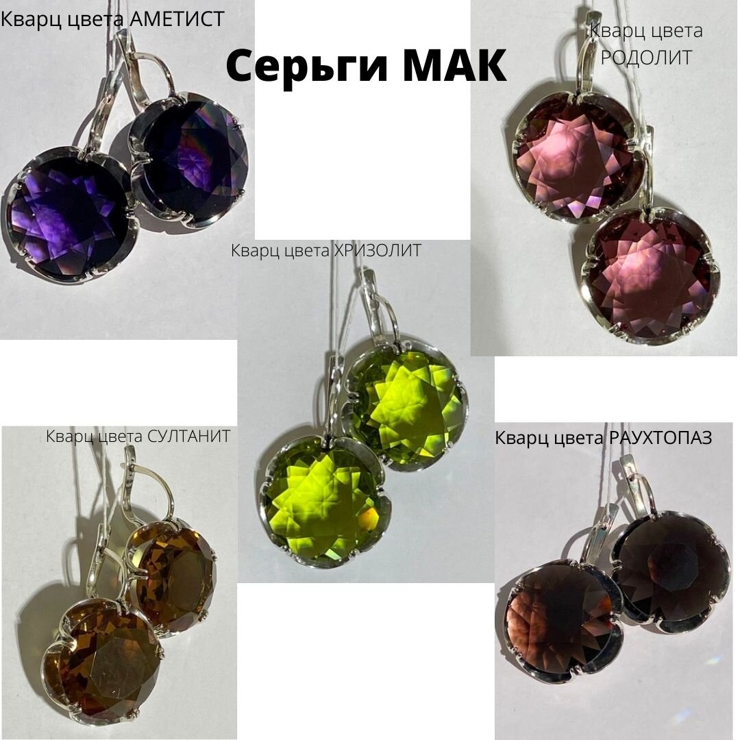 Камень диаметром 2,0см. В серьгах выращенный кварц. Ссылка на серьги на сайте: https://lucet.ru/collection/serebryanye-ukrasheniya-serebryanye-sergi-s-kamnyami/product/mak-sergi-iz-serebra Украшения могут быть довольно разными по дизайну и стилю, но выглядеть одинаково эффектно и превосходно. Кольцо, серьги и кулон "ЭЛЕОНОРА" Цена кольца 5000, цена серег 7900, цена кулона от 4500 Торжественное украшение для ярких женщин. Серебро 925 пробы