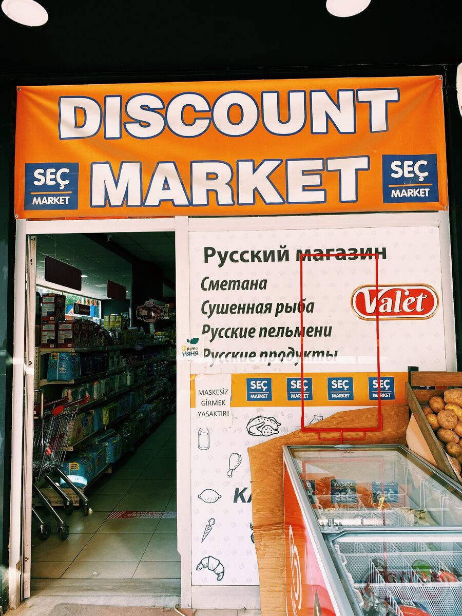 В Махмутларе, на улице Ататюрка 133, был обнаружен нами магазин Seç, в названии указывалось что он русский, зашли проверить. Есть несколько продуктов с русскими этикетками, но их немного.