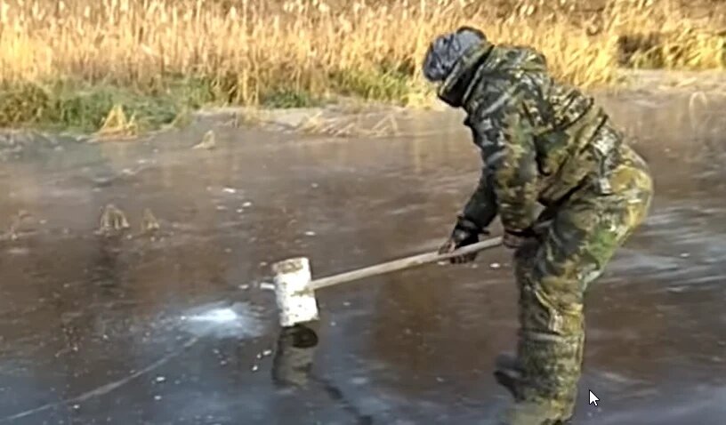 Наши зимы всегда нам преподносили различные сюрпризы. Так и в тот раз, середина зимы отметилась необычайно теплым периодом. Снежный покров везде заметно просел и потемнел, а прошедший обильный дождь смыл остатки снега на реке. Обычно матовый и шершавый лед превратился в гладкую поверхность, похожую на необычайно прозрачное стекло. Естественно, на середине реки было невозможно что-либо увидеть. Но, на мели у берега четко созерцалось илистое дно, со всеми его достопримечательностями и обитателями. Стайки окуней неспеша ретировались при приближении человека. Молнией сверкала, подняв муть, спугнутая щука. Только сонные налимы спокойно продолжали лежать на дне, совершенно не обращая внимания на стоящего над ним рыбака. Естественно, ни о каком ужении в таких условиях не могло быть и речи.Сидящие неподалеку два мужичка снимали стресс от неудачной рыбалки водочкой. Возвращаться домой без рыбы им не хотелось. К тому же, кроме банального ужения, они знали немало способов ее добычи. Один из них п