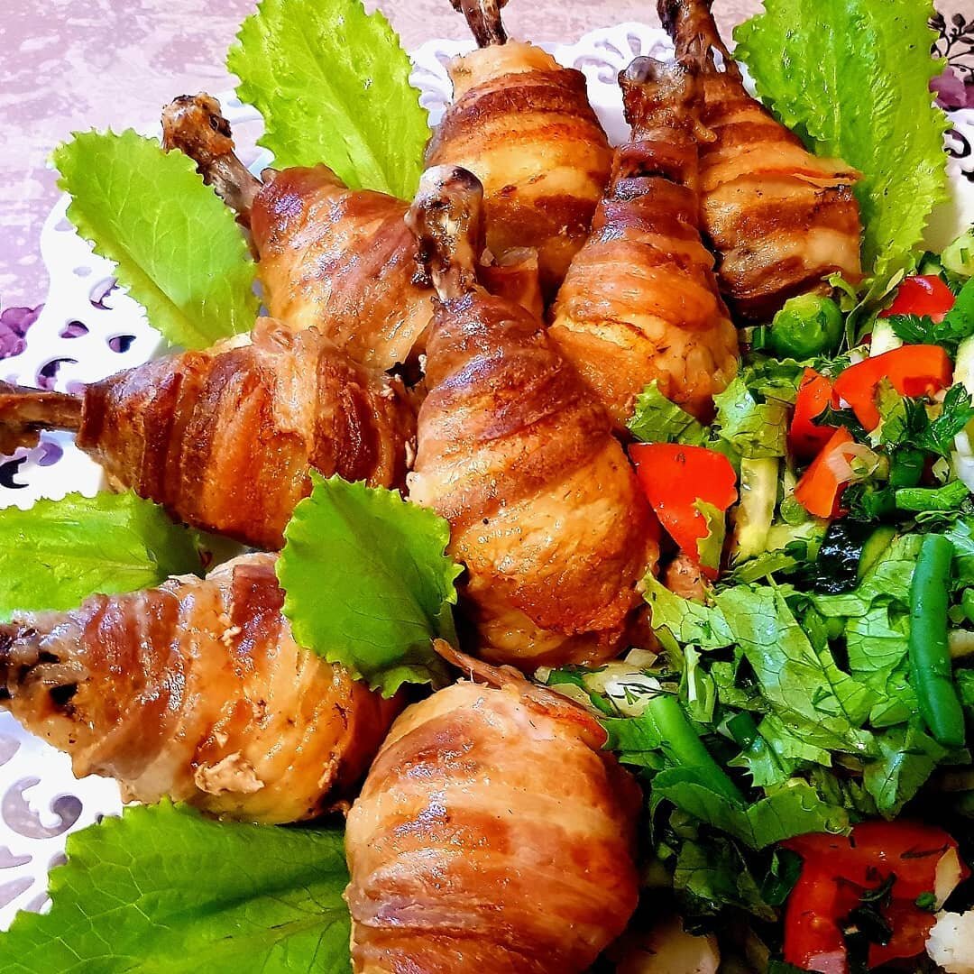 Проще простого! Куриные ножки в беконе - это вкусно, сочно и красиво. А румяная и хрустящая корочка придаст блюду интересные вкусовые оттенки!
