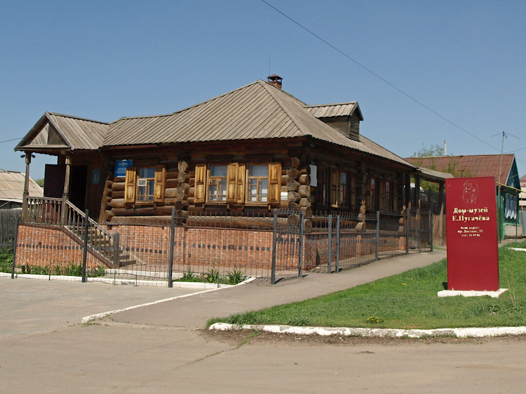 Проспект Нурсултана Назарбаева (до 2019 года проспект Достык, до этого также проспект Ленина, Советская улица, Большая Михайловская улица) - главная улица Уральска, на которой сосредоточены почти все основные достопримечательности города. Если вы приехали в Уральск в качестве туриста, то рекомендую выделить на проспект один день и пройти его с юга на север. Именно так и поступил автор этого обзора жарким майским днём 2018-го года. Первый исторический объект, с которого стоит начать прогулку, находится на пересечении со Стремянной улицей. Речь идёт о доме-музее Емельяна Пугачёва, расположенном в курене яицкого казака Петра Кузнецова середины ХVIII века постройки. В начале 1774 года Пугачёв посещал этот дом и сватался к дочери хозяина Устинье, а их помолвка бурно отмечалась местными казаками. Впоследствии здесь бывали многие исследователи восстания, в том числе А. С. Пушкин, В. И. Даль, В. Г. Короленко. Музей в бывшем доме Кузнецова открылся в 1991 году. Ранее здесь размещалась библиотек