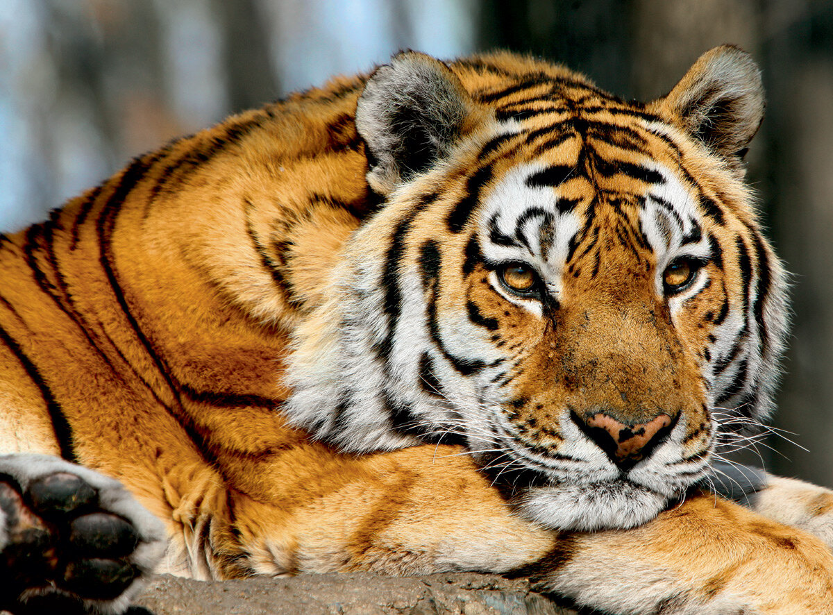 Самая крупная дикая кошка - Амурский Тигр. За последние сто лет охота и фрагментация лесов резко сократили популяцию тигра. 3 подвида вымерли в конце 20 века, остальные 6 подвидов находятся под угрозой исчезновения. Браконьерство представляет собой незначительную, но все же очень серьезную угрозу для амурских тигров. Амурский тигр обитает на востоке России, а также встречается в Китае и Северной Корее. Предпочитает обширные березовые леса. Тигр предпочитает одиночный образ жизни. Занимает обширные охотничьи угодья, за день может пройти до 20 км. Чаще всего ищет добычу возле водоемов. Он отлично прыгает, даже до 6 м. Тигр отлично плавает. Охотится на оленей, кабанов, косуль, кабаргов, лосей, мелких хищников и птиц. За один прием пищи может съесть до 40 кг мяса. Тигр использует свою шерсть как камуфляж, чтобы охотиться незаметно. Он выжидает и подкрадывается достаточно близко, чтобы атаковать свою жертву быстрым и смертельным прыжком. Беременность длится от 103 до 112 дней. Тигрица рожд