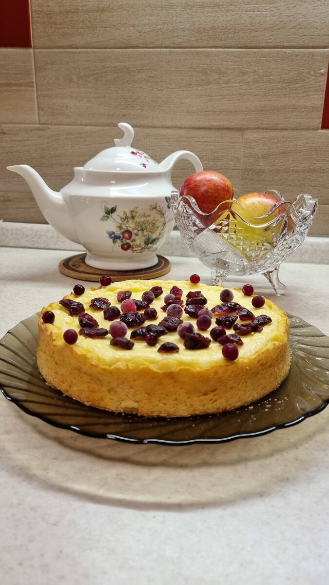 #завтрак Ещё одно приятное открытие низкокалорийного, но при этом не менее вкусного сметанника, который на мой взгляд идеально подходит на завтрак! Ингредиенты: Основа:, Творог брикетный (у меня 9%), Яйцо, Сметана, Мука (рисовая с пшеничной 50×50), Разрыхлитель, Подсластитель по вкусу (фитпарад 2 мерные ложки), Заливка:, яйцо, Сметана, Крахмал кукурузный, Ванилин, Подсластитель по вкусу (фитпарад 2 мерные ложки), Ягоды для украшения, любые Способ приготовления: Вилкой размять яйцо, сметану и творог. Добавить просеянную муку с разрыхлителем, подсластитель. Всё перемешать. Тесто получится вязкое, выложить мокрой ложкой в форму. Диаметром 16 см.-18см., немного смазать маслом. Бортики 2.5 см. Смешать все для заливки: яйцо, сметану, подсластитель, крахмал. Вылить в подготовленную форму. Выпекать при 180°. 40 мин. Примерно. Готовый сметанник остудить. Можно подавать к столу. Вяленая клюква, отлично дополняет вкус, можете взять любые другие ягоды- фрукты. Приятного аппетита 💕. Кушайте вкусно