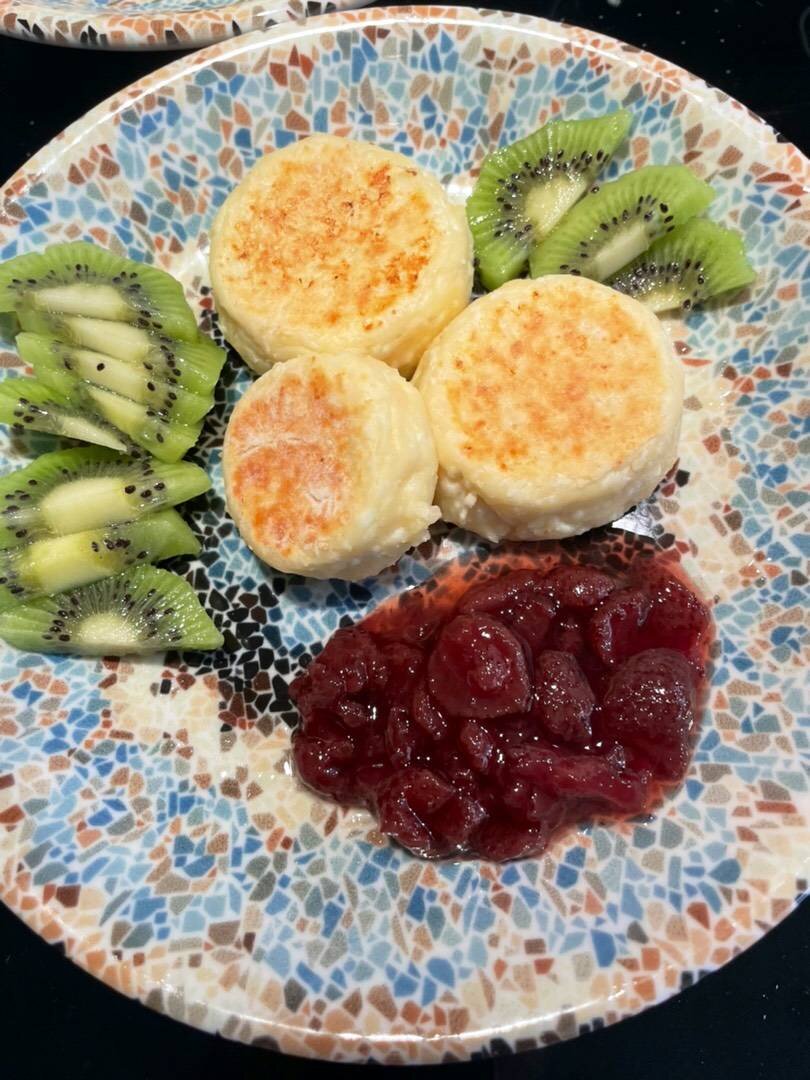 Сырники в пп исполнении, запечённые на сухой сковороде без сахара. Очень вкусные и быстрые. И без лишних калорий. Ингредиенты: творога 2-5%, яйцо, творожного сыра, муки, кокосовой стружки Способ приготовления: Подотовить ингредиенты. Смешать творог, яйцо, творожный сыр и кокосовую стружку в миске, смешать. Затем добавить муку и вымесить липковатое тесто. Припылить поверхность мукой и сформировать шарики. Чашкой прокатать шарик с двух сторон, поправить края. Выложить на сухую сковороду и жарить на среднем (не сильном) огне 10 минут с одной стороны и под крышкой 10 минут с другой стороны. Готово. Приятного аппетита.