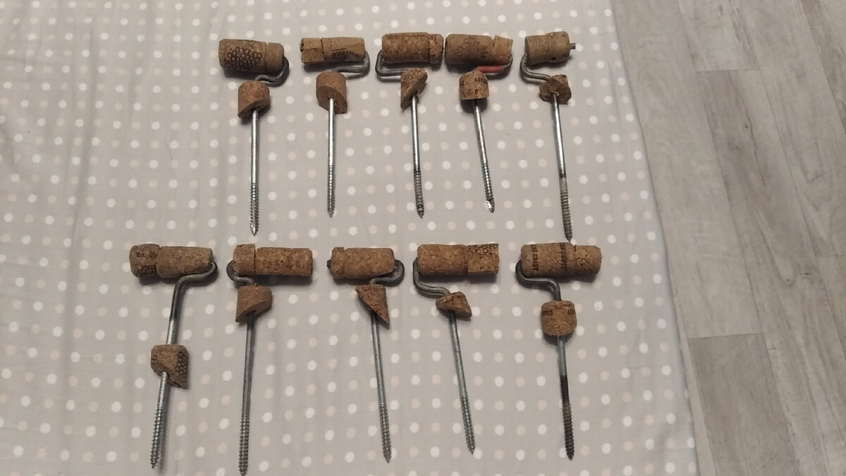 - Собираем винные пробки с друзей и знакомых и варим их в воде на медленном огне, пока пробки не выпрямятся. Пробок у меня ушло примерно 20 штук на 10 ввертышей.