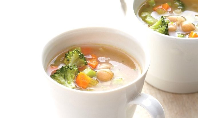 2. Овощи почистить и помыть. Картофель нарезать кубиками, брокколи — кусочками. Когда горох станет мягким, долить воды, а после закипания добавить подготовленные овощи.