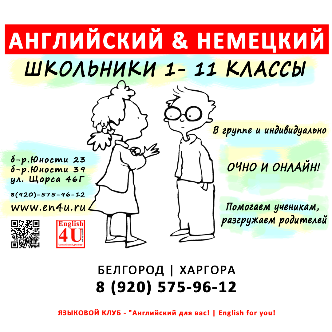 ✏️ Уютные кабинеты рядом с вашим домом или школой - ваш ребёнок сможет самостоятельно ходить на занятия в удобное время или сразу после школы ✏️ Помощь по школьной программе и избавление от головной боли с домашними заданиями ✏️ Доступные цены - группа 2800 руб. за 8 занятий по 60 мин. Семейная скидка 10%, если 2 и более человек занимаются в нашем клубе ✏️ Углубленное, опережающее обучение - Сбалансированное развитие всех аспектов языка говорения, чтения, письма, слушанья и грамматики ✏️ Обучение проводится в комфортной дружеской обстановке индивидуально или в группе до 6 человек - ваш ребёнок обязательно будет услышан. ❤️ Мы дорожим каждым нашим учеником и были бы рады принять всех желающих. Но, к сожалению, набор новых учащихся у нас всегда небольшой. Пока вы ещё можете записаться, не упустите эту возможность. Звоните, пишите ПРЯМО СЕЙЧАС. ✍️Запишитесь на занятия по телефону (вайбер, телеграм) 📲+79205759612 Или пишите в директ 🏠Ждём вас по адресу Г. Белгород Б-р Юности 23 Б-р Юнос