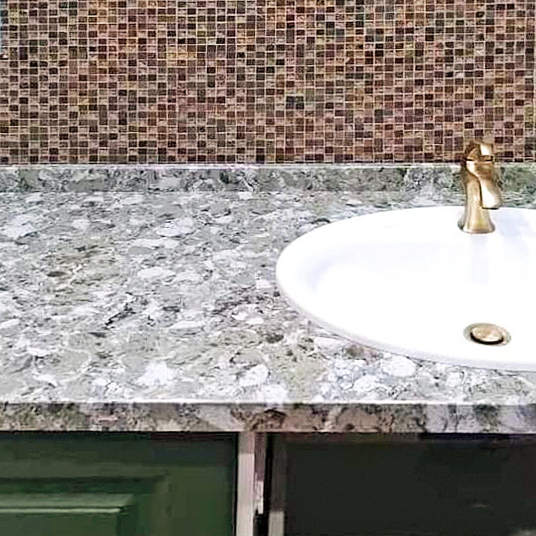 Сейчас существует куча разных материалов, из которых можно сделать столешницу для ванной комнаты. Рассказываем о каждом подробнее: 1. МДФ и ЛДСП — самый доступный и недорогой вариант со множеством расцветок. При качественной ламинации и обработке торцов доска выдерживает не только повышенную влажность, но и прямые струи воды. Установить и врезать в неё раковину можно самостоятельно. Однако при повреждении ламинации материал очень быстро впитывает воду и разбухает, поэтому обращаться с такой столешницей нужно осторожно. Способ монтажа — подвесной или полуподвесной. 2. Массив дерева — прочный и долговечный материал, но очень дорогой, а в условиях повышенной влажности его срок службы ограничен. Дерево обязательно должно быть пропитано водозащитными составами и покрыто лаком. Верхний слой, который подвергается постоянному механическому воздействию, нужно регулярно обновлять. Для таких столешниц используются влагостойкие породы вроде дуба и лиственницы. Из-за массивности такие столешницы ну