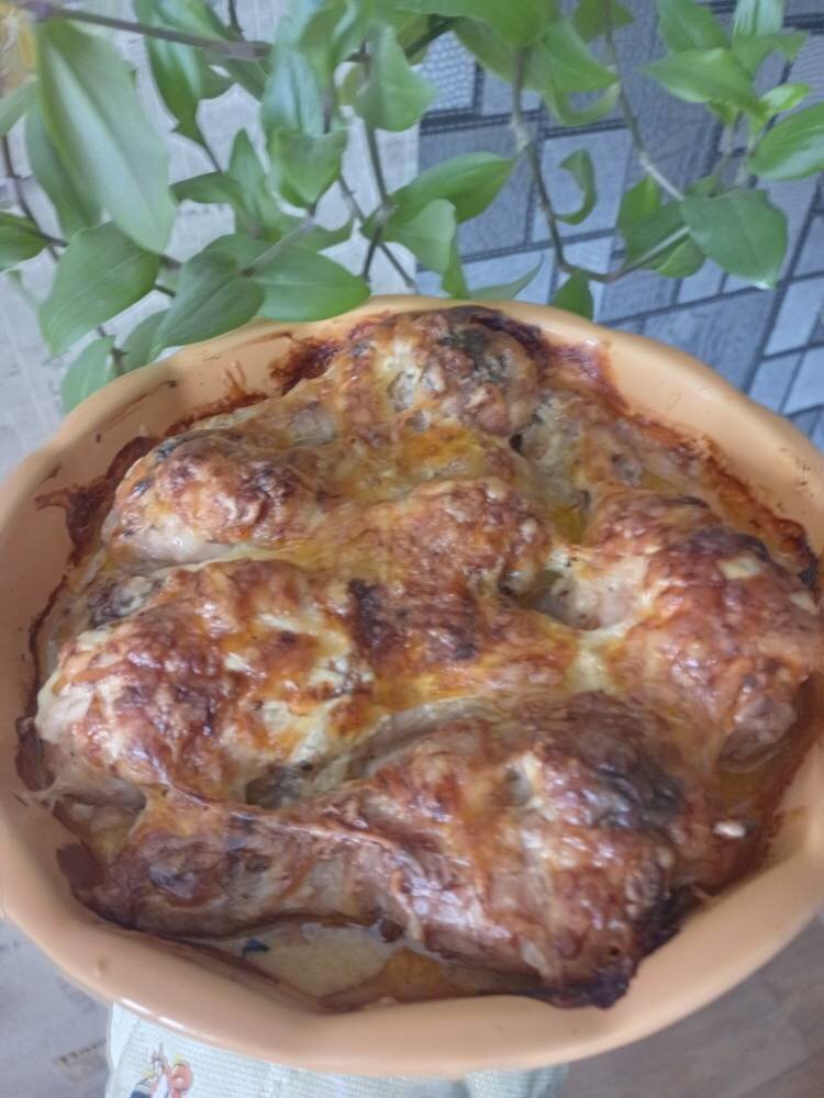 Быстрый вкусный ужин. Не собиралась выкладывать, поэтому фоток в процессе нет. И ингредиенты все на глаз. Ингредиенты: Куриные ножки, Сметана, Сыр, Соль, Специи, Чеснок (у меня сухой), Масло подсолнечное Способ приготовления: Ножки моем и обслуживаем. Солим, добавляем чеснок, специи для курицы и масло, перемешиваем и даём постоять 30 мин. Обжариваем с двух сторон на сковороде до золотистой корочки. Перекладываем в посуду для духовки, смазываем сметаной и посыпаем сыром. В духовку до готовности. Приятного аппетита.