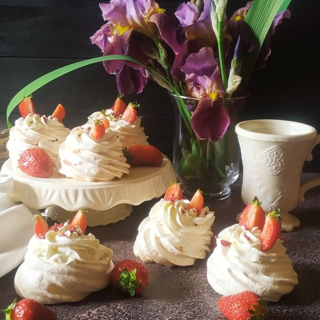 Робила перший раз в житті, вийшли не такі ідеальні як би я хотіла, але смак дійсно чудовий. Хрустке безе, свіжі ягоди, ніжний крем... Ингредиенты: цукрової пудри, білки, кукурудзяного крохмалю, лимонного соку, свіжі ягоди на ваш смак, Крем:, маскарпоне, вершків 33 відсотка, цукрової пудри Способ приготовления: Духовку включаємо на 180 градусів. Білки відділяємо від жовтків, дуже обережно, щоб ні граму жовтка не потрапило. В чашу міксера вливаємо білки і починаємо збивати на невеликій швидкості. Цукрову пудру вводимо коли в білках виникла піна, за два - три прийома вводимо всю пудру. Ставимо на максимальну швидкість і збиваємо до стійких піків. В тарілці змішуємо лиммоний сік та крохмаль, і вводимо дерев'яною ложкою в білки, легенько перемішуючи знизу вгору. На холодне деко заслане пергаментом висаджуємо, за допомогою кулінарного мішка і насадки,"закрита зірка" безешки так, щоб серединка була пустою. Температуру в духовці ставимо на сто градусів. В цей час поки випікаються безешки духов