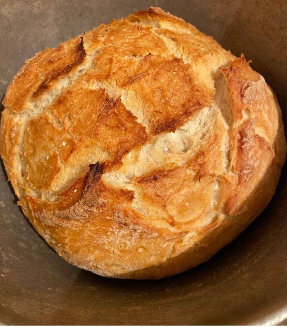 #хлеб #выпечка #рецепт Ингредиенты: мука, вода (50 градусов), соль, дрожжи сухие Способ приготовления: Смешиваем муку, дрожжи, соль и добавляем воду. Перемешиваем тесто ложкой, тесто будет липким (так и должно) накрываем и ставим в тёплое место на час. Как подошло, стол присыпаем мукой и выкладываем тесто, разравнивая квадратом накладывая каждую сторону друг на друга, и так 7 раз. Затем наше тесто собираем в мешочек и убираем хвостиком в низ. Форму предварительно присыпать мукой. Сверху хлеба делаем надрез в виде крестика. Затем накрываем наш хлеб крышкой и ставим в духовку на 40 мин на 240 градусов (духовка разогретая заранее) Как 30 мин прошло понижаем температуру до 200 градусов, снимаем крышку и ставим хлеб на 10 мин. Затем достаём и даём остыть.. Вкусный, хрустящий хлебушек готов. Приятного аппетита!