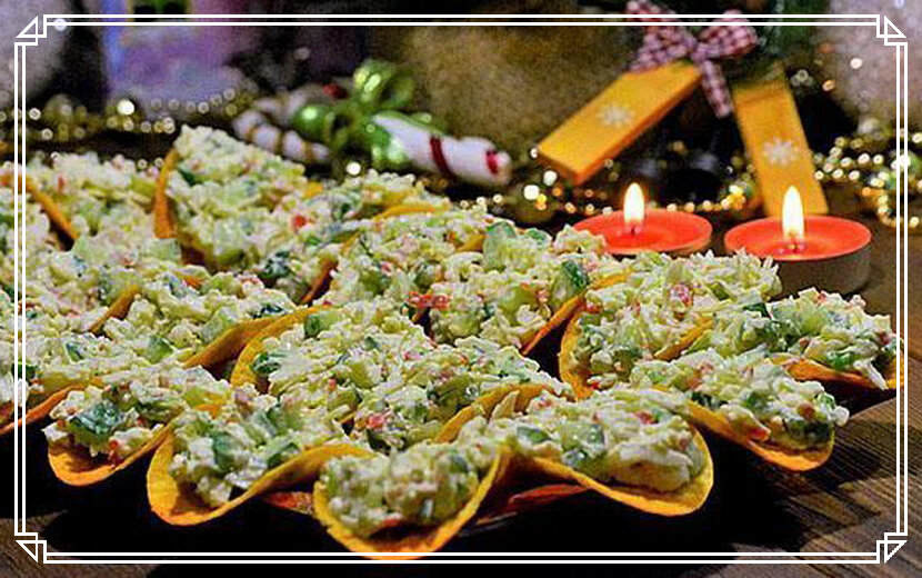 2. Закуска на чипсах "С морепродуктами и огурцом"