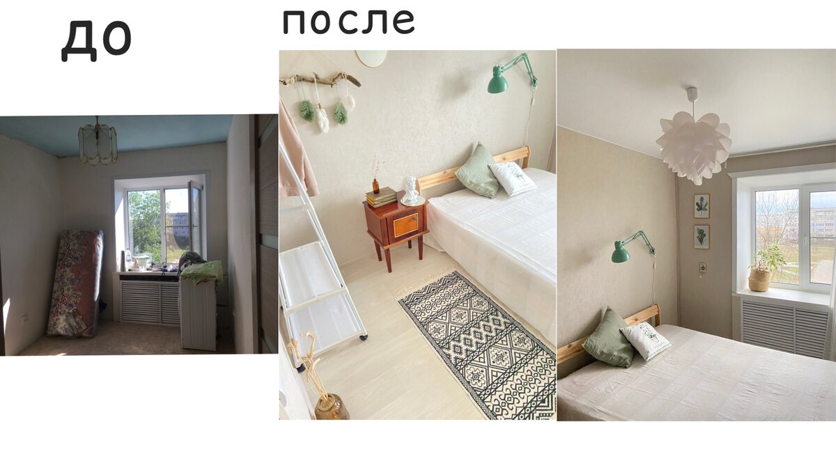 Итак, наш "Домик с утками"...здесь мы бюджетно обустроили спальню, в которой предварительно переклеили обои и настелили новый светлый линолеум.