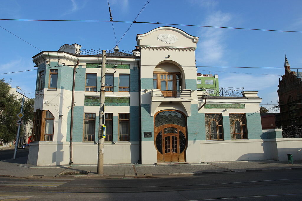 "В толпе воинственно проплывали золотые погоны... Толпа сворачивала с Садовой на Дворянскую мимо нелепо роскошного, выложенного зелёными изразцами, особняка Курлиной", - именно так описал шикарный дом самарской купчихи Александры Курлиной писатель Алексей Толстой в романе "Хождение по мукам". Насчёт того, насколько особняк нелепо роскошный, у каждого своё мнение, однако здание и правда впечатляет необычным видом. Построили его в 1903 году в модном в ту пору стиле модерн. Фасад был отделан голубой плиткой, а металлические решётки в виде стилизованных крыльев бабочки. Стрекоза на крыше и ажурные ворота придавали дому неповторимость и воздушность кованых конструкций. Также над парадным входом разместили лепное изображение портрета купчихи. Это был подарок от любящего мужа, который считал свою супругой самой красивой женщиной на планете. Внутри особняк являлся не менее роскошным, чем снаружи. Имелось 22 комнаты, каждая из которых получила индивидуальное оформление. Кстати, и в инженерном