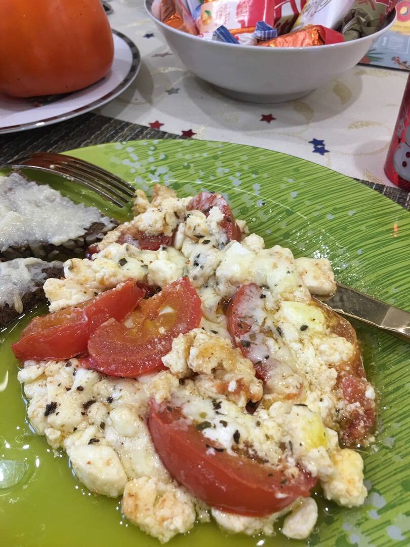 Омлет может быть и без яиц! Полезный и очень вкусный))) Помидоры, сливочное масло, чёрная гималайская соль (вулкана, с минералами, не откладывается в суставах), сыр твёрдый и домашний))) #вегетарианство #зож #омлет Ингредиенты: сливочного масла, помидор, домашнего сыра или Адыгейского, сыра твёрдого любого (сливочного), черно-розовой гималайской соли, Перец, зелень (базилик), тамаринд, куркума, сметаны Способ приготовления: Растопить масло в сковороде. Нарезать дольками помидор и быстро обжарить с двух сторон. Размельчив домашний сыр добавить к помидорам. Когда сыр поджариться немного, размешать и добавить сметану, соль, перец, базилик, тамаринд, можно украсить щепоткой куркумы. Натереть мелко твёрдый сыр, посыпав сверху, закрыть крышкой, выключить плиту. Через минуту подать на стол в горячем виде. Приятного аппетита и хорошего здоровья!)))