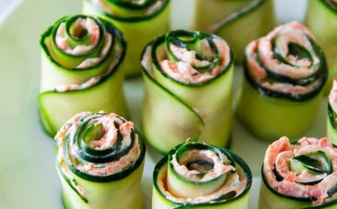 Если вы решили начать правильно питаться, то этот рецепт именно для вас. Этот рецепт рулетиков с лососем бессменно вам понравиться и вы не сможете уже без этой вкусности. Для приготовления этого рулета вам понадобиться лосось, авокадо, огурец и творожный сыр филадельфия. Для приготовления вам понадобится: 1. Лосось слабосоленый - 130г 2. Филадельфия или другой творожный сыр - 30г 3. Огурец большой -1шт 4. Красная икра - 15г 5. Зелень (укроп, лук) - 10-20г для подачи 6. Авокадо - 40г Для начала порежьте огурец тонкими полосками. Положите на бумажные полотенца, чтобы убрать всю лишнюю влагу. Затем смажьте полоски сыром филадельфия по всей длине. Поверх сыра уложите лосось и авокадо. После аккуратно скатайте в рулет и порежьте небольшими кусками. Огуречные пп ролы готовы! Приятного аппетита! источник: https://lenivienovosti.com #пп рецепты #пп питание #пп еда #пп меню