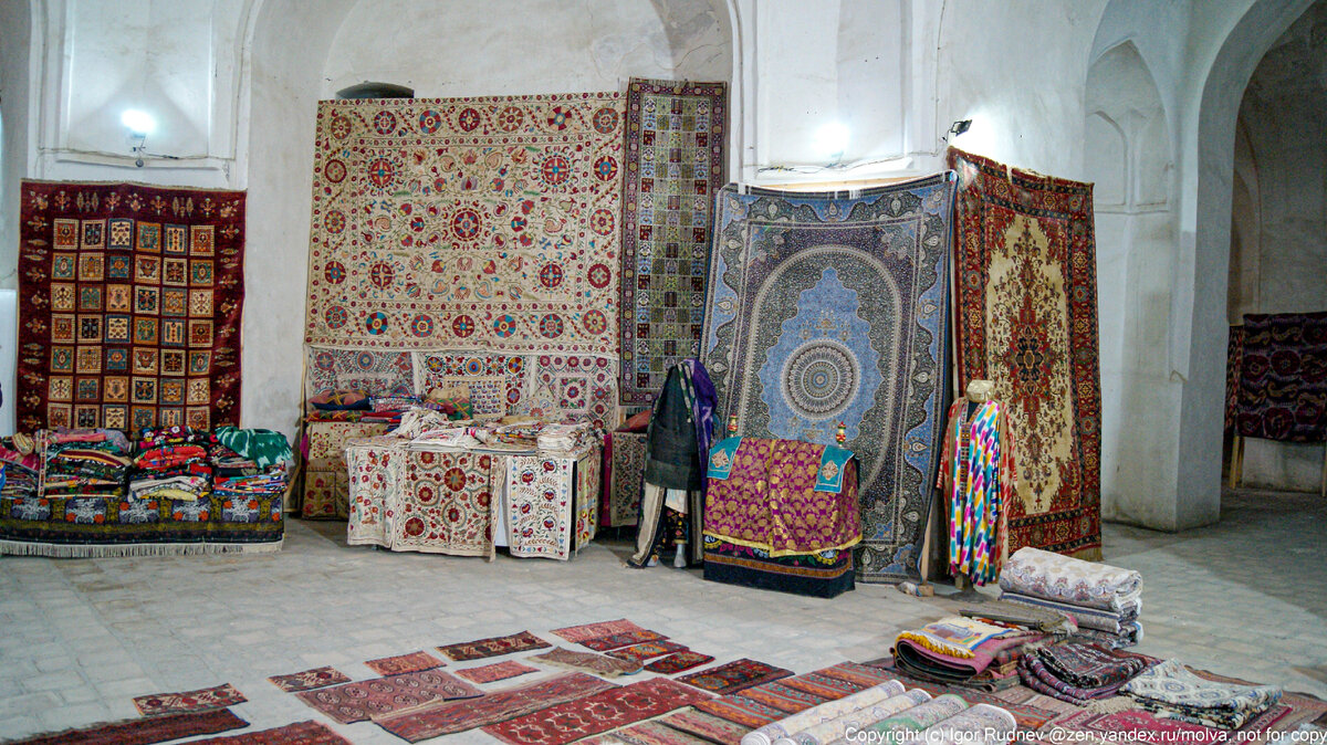 Именно столько стоит самый большой ковер, что на заднем плане на фото. Увидеть эту драгоценность мне довелось в Узбекистане в городе Бухара, причем драгоценностью такой ковер считается не только по узбекским меркам, но и в принципе для большинства жителей планеты Земля. За 1,6 млн рублей даже с сегодняшними выросшими ценами можно купить простенький новый автомобиль, а тут какой-то ковер... Что в нем вообще такого особенного, что ломят такие деньжищи? В Узбекистане ковер — это не просто предмет интерьера или средство создания уюта в доме. Это семейная реликвия, которая передается по наследству из поколения в поколение, а еще на свадьбе служит богатым приданым. По количеству ковров можно определить, насколько состоятельная семья живет в доме. Если в каждой комнате на полу лежит по тканому вручную ковру, значит, деньги водятся. Ну, а если ковер только один в главной комнате, значит в семейном бюджете имеются бреши. Раньше ковер брали с собой в дальнюю дорогу путешественники из Средней А