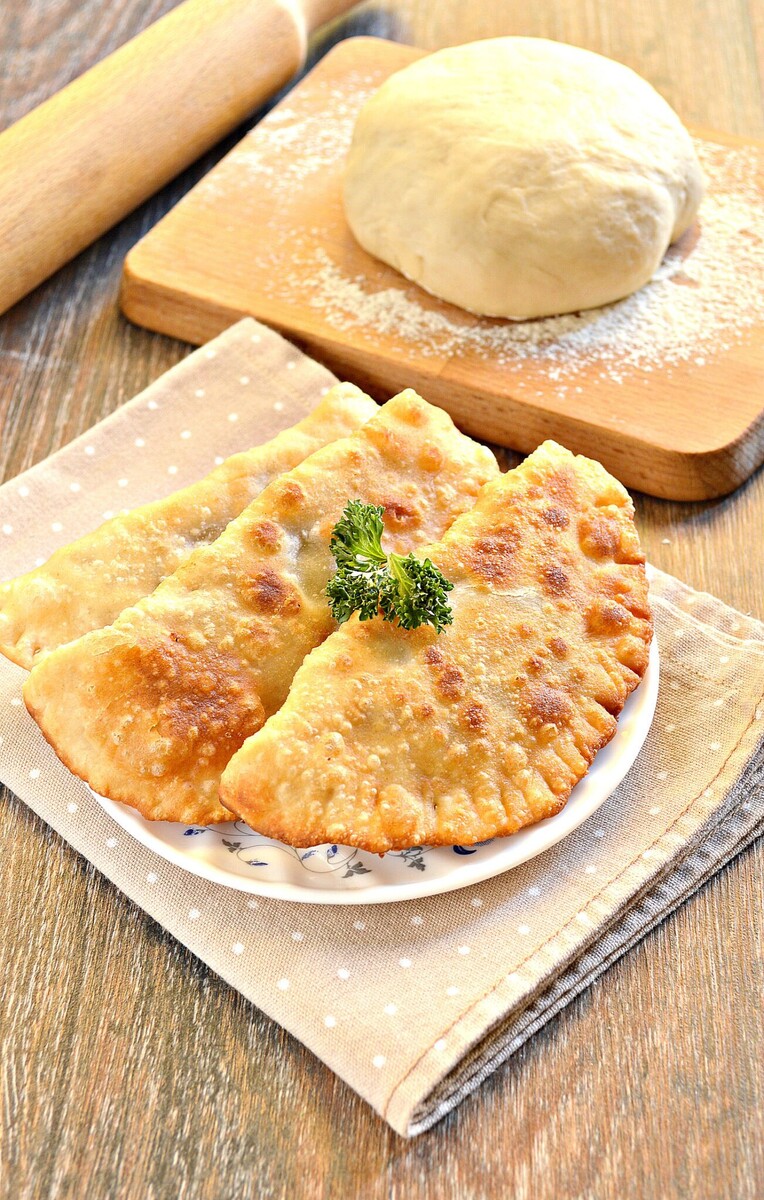 Что нужно: Пшеничная мука 2 стакана Вода 0,5 стакана ( можно еще добавить, чтобы тесто получилось эластичное) Соль 0,5 ч.л без горки Растительное масло 3 ст.л Водка 0,5 ч.л (Не обязательно) Важно! Не переборщить с водой! Замешивать тесто до однородности. Если тесто все еще прилипает к рукам, добавитье немного муки. Водка и масло делает тесто послушным , позволяет раскатать тонко. Готовые чебуреки получатся хрустящими и с пузырьками! Готовим ингредиенты по списку. В классический рецепт идет всего 3: вода,мука и соль. Но маленькая хитрость (смотрите выше) сделает чебуреки особенно вкусными. В миску просеиваем муку. Желательно взять глубокую, так будет удобнее. Просеивать муку нужно обязательно, чтобы насытить кислородом. А так же , удалить комочки и инородное примеси. В другой ёмкости смешиваем холодную,кипячёную воду и растворяем в ней соль. Воду смешиваем с мукой. Добавляем водку и растительное масло. Замешиваем тесто. На рабочую поверхность добавляем муку. Выкладываем тесто и месим по