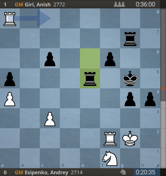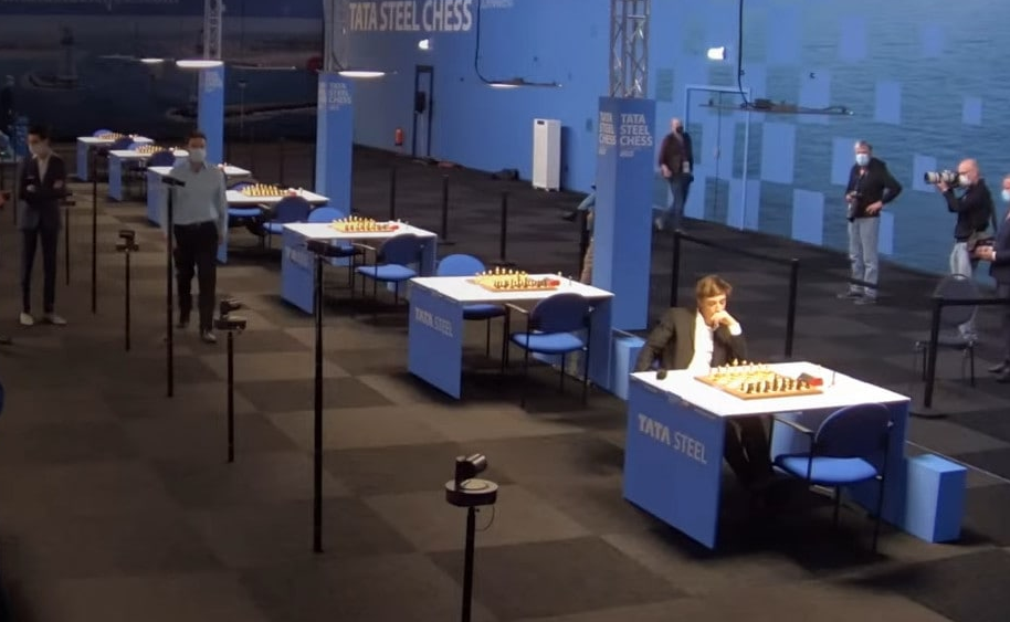 Главная интрига восьмого тура Tata Steel Chess заключалась в том, продолжит ли свое выступление на турнире Даниил Дубов. К счастью, шахматист сдал отрицательный тест на COVID и с чистой душой вышел на восьмой тур без маски, причем сегодня он появился первым в игровом зале. В итоге Дубов сыграл вничью с Ян-Кшиштофом Дудой, как и Магнус Карлсен в противостоянии с Сэмом Шенкландом. Норвежец старался запутать соперника редким вариантом защиты Тарраша, но Сэм не поддался на его уловки. В превосходной форме находится Аниш Гири. Вчера голландский гроссмейстер получил внеплановый выходной благодаря принципиальности Дубова, а сегодня уже за доской обыграл Андрея Есипенко. Не так часто в партиях самого высокого уровня можно увидеть жертву легкой фигуры за две пешки - именно такой трюк продемонстрировал Гири. Как оказалось, этот размен стал ключевым моментом партии, поскольку в эндшпиле черная пешечная армада оказалась сильнее белого коня на королевском фланге. Решающая ошибка белых - ход 45.Kd2