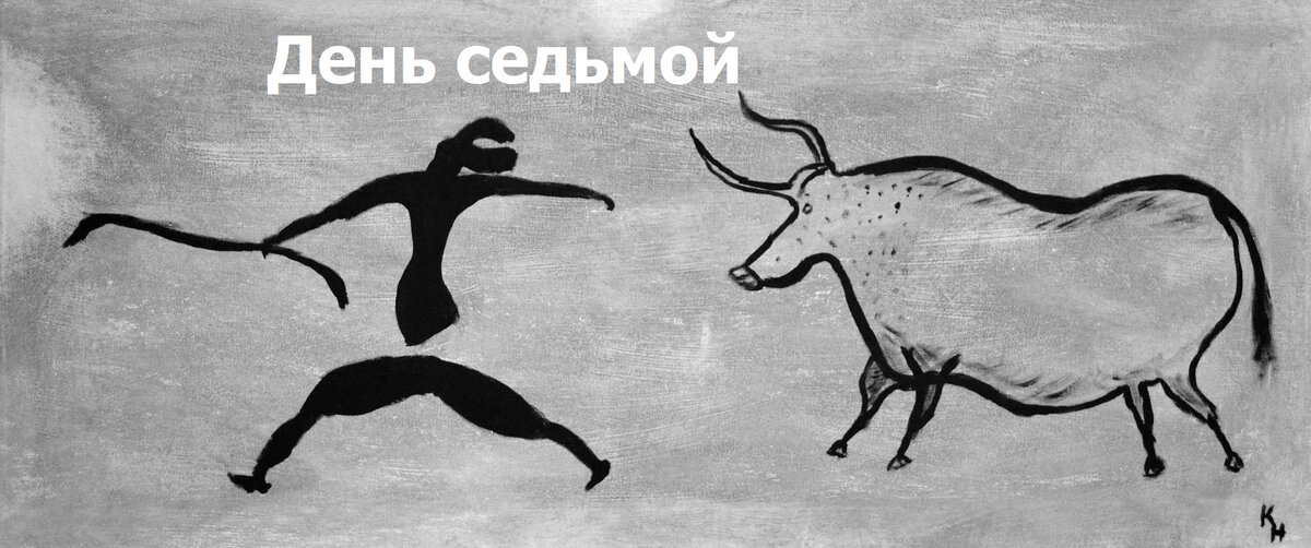 Записан в реальном времени День седьмой. И когда же изобретут календарь, чтобы указывать более точные даты? Писать "день седьмой" — это банально! Я, вообще, только до десяти считать умею. А что дальше?.. Баба-человек говорит, что у неё в животе кто-то шевелится. Уверен, это наши потомки! Интересно, сколько их там уже накопилось? Вот бы побольше! Можно было бы придумать такую игру, где две команды бегают по полянке и отнимают друг у друга плод "кокошкового" дерева. Было бы здорово! Оной команде вставить павлиньи перья, другой — подвесить сушёных крыс, как у вождя и шамана, чтобы не путать, кто из какой команды. Но тогда в племени может возникнуть недоразумение. Дикари не поймут, почему стало так много вождей и шаманов. Поднимется паника. Шучу, конечно. Правда, смешно?! Ха-ха-ха! Лучше придумать разноцветные набедренные повязки, чтобы не перепутать, кто из какой команды. Но... Чувствую, опять я замечтался. Пора на работу. Нужно изготовить лежанки для будущих потомков и всё такое-прочее.
