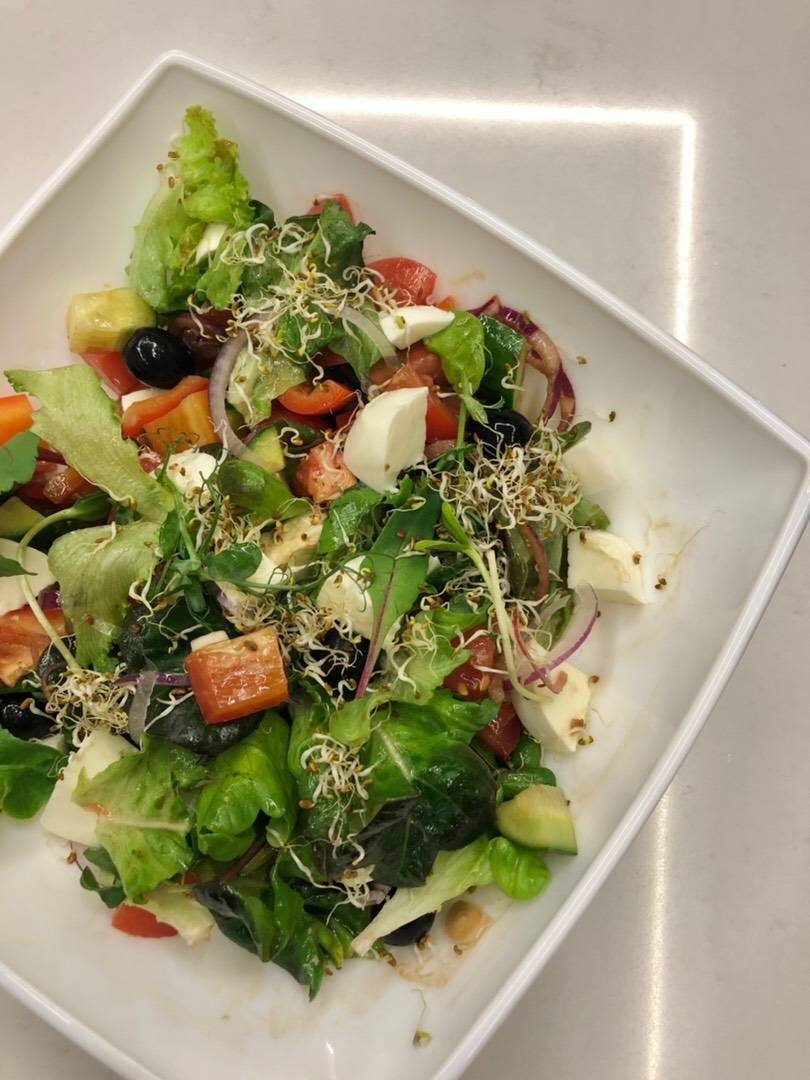 Очень люблю разные вариации этого салата, очень часто готовлю по разным поводам. Его можно есть как на ужин так и на завтрак, а если пришли неожиданно гости тоже этот салат будет удачным решением! #завтрак #салат Ингредиенты: помидора, болгарский перец, огурец, маслин консервированных без косточки, моцарелла, красного лука, Зелень по сезону, Для заправки, Оливковое масло, Бальзамический уксус, Семечки (подсолнечные, тыквенные и кунжутные), Микро зелень по желанию (у меня люцерна) Способ приготовления: Моем и режем овощи, средним кубиком. Кладём в миску, туда же отправляем маслины. В отдельной посуде готовим заправку. Лук режем кольцами и маринуем в оливковом масле и бальзамическом уксусе. Режем моцареллу и имеющуюся зелень и из отправляем в салат. Все перемешиваем! Сверху посыпаем семечками и проросшей микро зеленью, подаём к столу! Приятного аппетита!