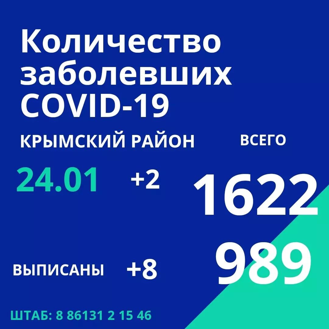24 января по информации оперативного штаба Краснодарского края в Крымском районе 2 новых случая заражения коронавирусной инфекцией.⠀