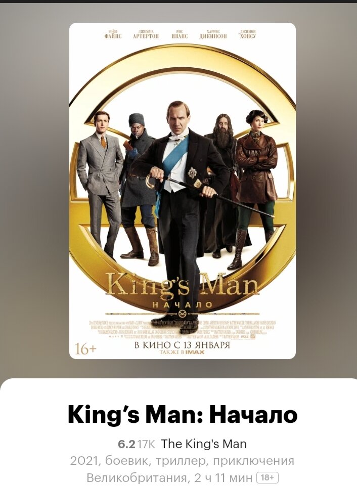 Ну вот и подходит к концу первый месяц 2022 года. Какие впечатления принес вам начало 2022 года? В январе вас ждут военные драмы и шпионские триллеры, приключения в утопическом будущем и встреча с призраками прошлого, любовь, сметающая все на своем пути, и запах крови, толкающий на убийства. 10. King’s Man: Начало / The King's Man (2021) Подробности картины не раскрываются, но уже понятно, что одним из главных героев будет сын герцога Оксфордского - Конрад, с виду не очень внушительный, но рвущийся в бой, куда в итоге и попадет. На пару с папашей Орландо он будет пытаться зарубить на корню план международной преступной клики, собравшейся стравить весь мир в глобальной войне. 9. Звёздный разум (Россия) В недалеком будущем вирус, поразивший биосферу, грозит скорой гибелью всему живому на Земле. Космическая миссия отправляется на далекую планету, чтобы создать для людей новый дом в космосе. Однако там космонавтов ждет столкновение с чем-то непостижимым, имеющим на планету собственные план