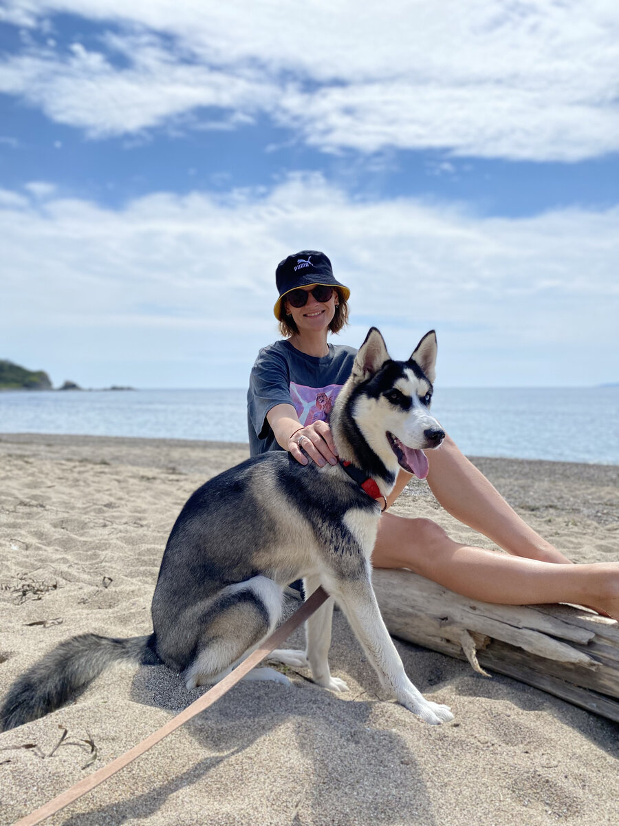 На второй день нашего пребывания там, «хозяйка» пляжа поняла, что наша #хаски не представляет угрозы соседским детям, поэтому ничего уже не говорила, видя, как Эска гуляет без поводка.