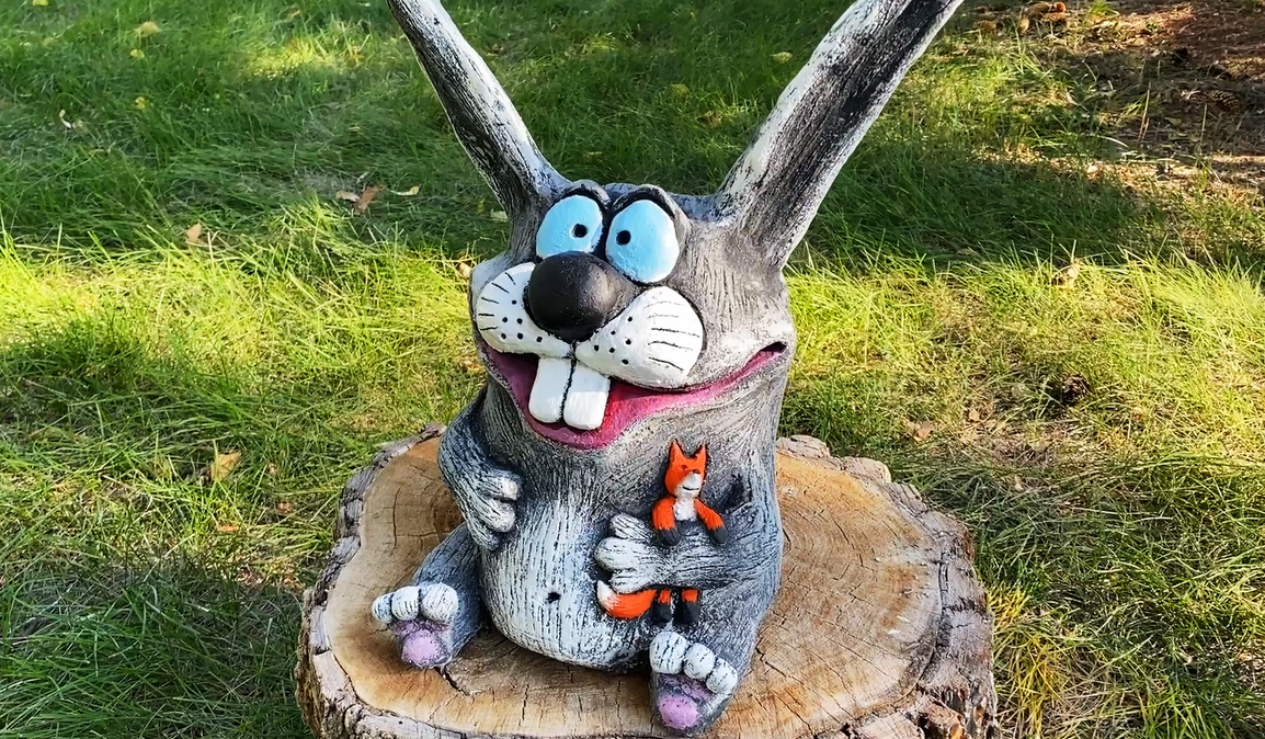 Берём пенопласт, цемент и получаем вот такого симпатичного зайца. Поделки из цемента.