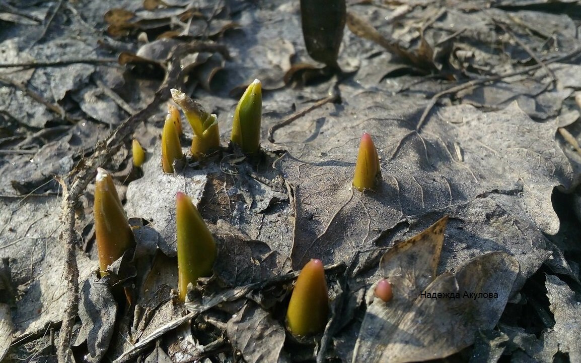 Весна. На улице тепло и сухо. Уже начинают лопаться почки на деревьях. Пчелы после долгой зимы делают облет, собирая клейкую жидкую смолу с топливных почек. Под орешиной пробиваются тюльпаны, поднимая острыми зелеными шильцами прошлогодние сухие листья. Готовлю обед на кухне, разделочный стол стоит у самого окна. Краем глаза ловлю какое-то движение на земле под окном. Мелькнуло что-то серое, большое, как нутрия, ну точно, похоже на серую нутрию. Откладываю все дела и стою, жду минуту, другую – никого. Вдруг выскакивает проворно толстая, как колобок, ежиха, хватает в рот пучок сухие ореховые листья (поэтому она мне и показалась огромной, как ворох) и с листьями бежит под ствол дерева. Там стоит коробка с песком, накрытая листом железа, свисающим до земли. Вот под этот навес и скрылась ежиха. Приготовив обед, я вышла и заглянула под навес, оттуда послышалось угрожающее урчание. Говорю: «Ну вот же ты, глупая, гнездо здесь устроила? И калитка рядом, и собака часто срывается с цепи, развор