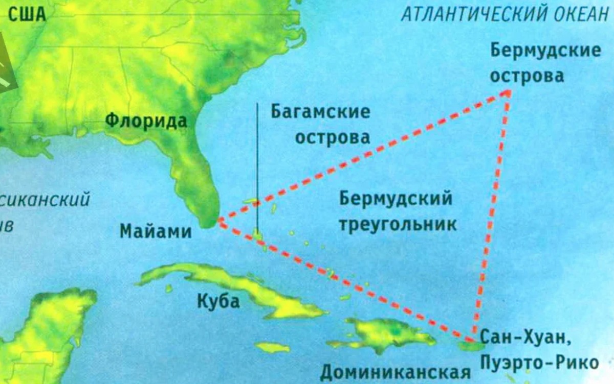 Только факты В вину аномалии ставят район Атлантического океана, ограниченный треугольником, вершинами которого являются Флорида, Бермудские острова и Пуэрто-Рико, площадь около 1,3 млн. кв. км.