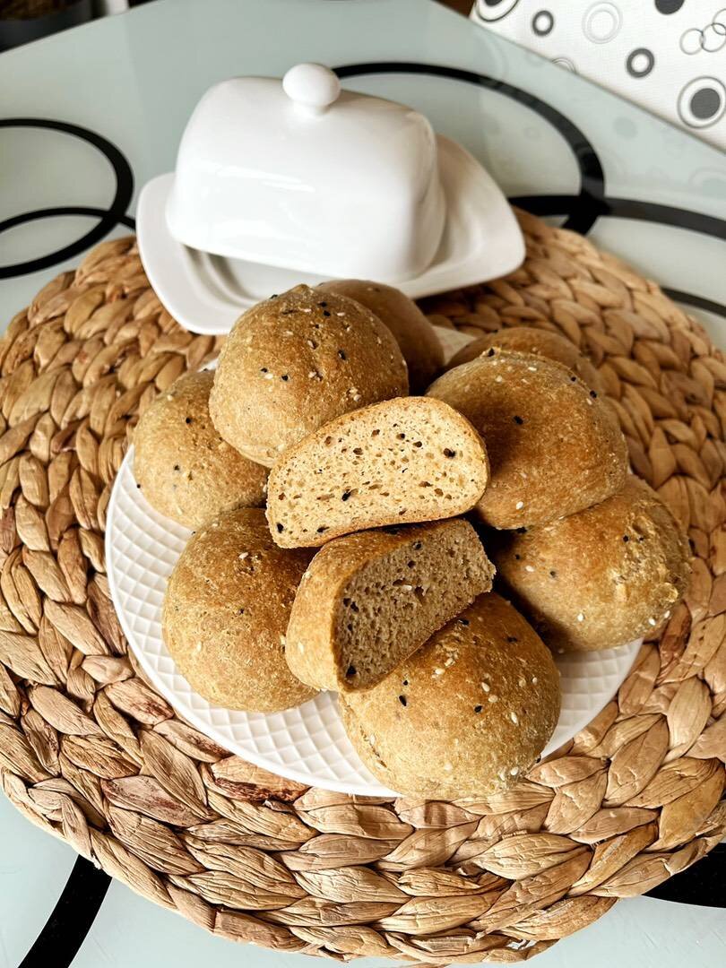 Очень вкусные и пышные булочки кето. Для тех кто придерживается диеты идеальный вариант для завтрака с маслом и чашечкой кофе ☕️ Ингредиенты: Мука миндальная , Вода , Яйца (средние), Масло сливочное , Псиллум мука , Соль, Заменитель сахара (у меня prebio sweet), Яблочный уксус , Разрыхлитель (можно соду пищевую немного меньше), Кунжут и чёрный тмин (по желанию) Способ приготовления: Соединяем жидкое (тёплая вода, яйца, уксус и растопленное масло) все тщательно перемешиваем до однородной массы. Всыпаем к жидкому псиллум и даём немного разойтись (5-10 мин) всыпаем кунжут и тмин постепенно вводим муку. Далее все остальные ингредиенты. Заводим жидкое тесто и даём постоять ещё 10 мин. затем постепенно подмешиваем и добавляем муку. Доводим тесто до плотного состояния. (мягкое и эластичное, слегка липнет к рукам) Оставляем тесто в тепле постоять и разрыхлителю сделать своё дело. Как немного увеличится то уже пора творить вкусняшку. Разогреваем духовку до 170* Верх низ. Смачиваем руки водой и