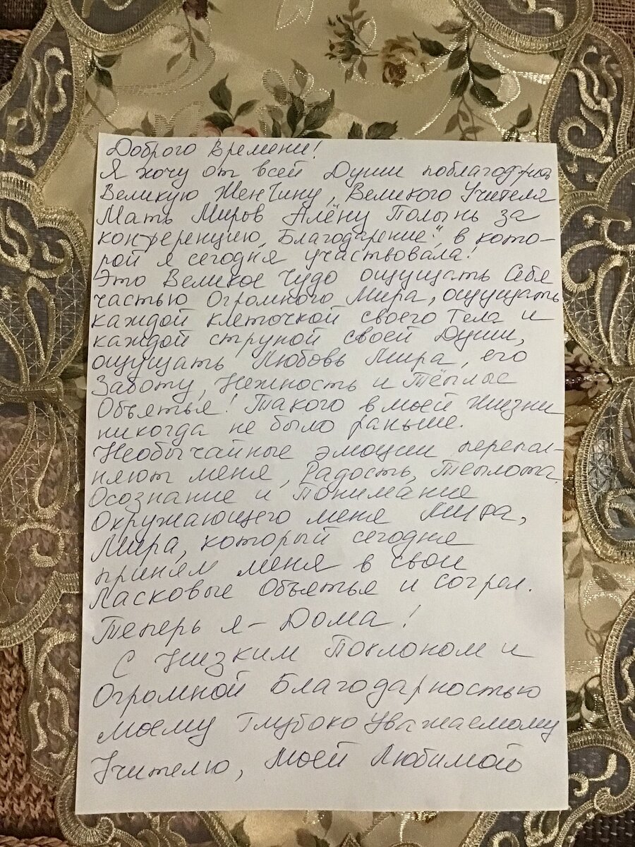 Я хочу от всей Души поблагодарить Великую Женчину, Великого Учителя, Мать Миров Алену Полынь за конференцию «Благодарение», в которой я сегодня участвовала!