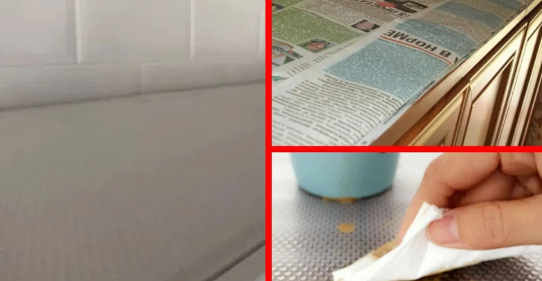 Тереть вам ничего не нужно, главное применить абсолютно уместное и правильное покрытие, не дающее скопиться загрязнению на шкафу. Некоторые накрывают их пакетами, газетами или бумагой. Другие знают, что вся бумага впитывает влагу, которая разрушает кухонную гарнитуру. Она наносит ей вред, оставляя грязные разводы, а после – может и вовсе разрушить деревянную основу.