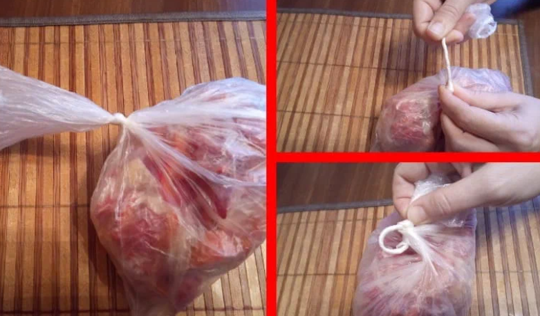 Легко развязываю даже сильно затянутый узел на пакете без ножниц и ножа. Делюсь способом