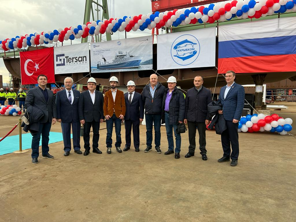 21 января на турецкой верфи Tersan заложили киль большого промыслового траулера проекта ST-119 PFC для Тихоокеанской рыбопромышленной компании. Событие произошло в торжественной обстановке, с участием российской делегации. В состав делегации вошли заместитель генерального директора Николай Котов, главный инженер Вячеслав Степанов и технический персонал компании, представители Российского морского регистра и норвежской проектной компании Skipsteknisk AS. Сейчас специалисты «Тихрыбкома» совместно с норвежским проектантом рассматривают техническую документацию на навигационное и промысловое оборудование для оснастки траулера, корректируют проект с учетом практического опыта коллег из камчатской компании «Океанрыбфлот», которые уже эксплуатируют построенное на заводе Tersan промысловое судно и строят второе. Генеральный директор «Тихрыбкома», президент Магаданской ассоциации рыбопромышленников Михаил Котов назвал событие знаковым и отметил, что случилось оно раньше оговоренных в контракте