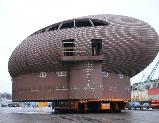 Компания Marketex Marine, входящая в состав концерна BLRT Grupp, строит уникальный плавучий выставочный комплекс по заказу норвежской компании Fluctus. Строящийся комплекс получил название Salmon Eye. «Реализация такого проекта требует высокой степени отдачи от каждого из участников процесса, ведь до сегодняшнего дня подобных комплексов мы не строили. Конструкция состоит из понтона и надстройки нетрадиционной эллиптической формы, напоминающей глаз рыбы. Снаружи будут установлены 9500 «чешуек» из высококачественной нержавеющей стали, которые, благодаря своему уникальному блеску, будут имитировать цвет и структуру чешуи лосося. Работы ведутся по плану, металлоконструкция уже отправлена на покраску», — отметил председатель правления Marketex Marine Федор Квич. По данным пресс-службы, длина и ширина выставочного комплекса составляют 26 м, а высота – 15 м. Общий вес около 1000 тонн. «Marketex Marine является нашим многолетним партнером, поэтому компетенция и уровень квалификации работников