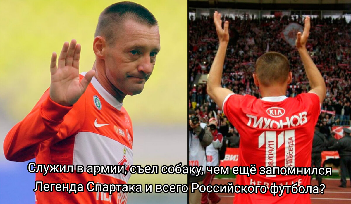В конце 90-х годов был капитаном и символом московского «Спартака», но спад в его игре, а также прочие нефутбольные обстоятельства в 2000 году привёл к отчислению из команды тогдашним главным тренером «Спартака» Олегом Романцевым. Уход из «Спартака» стал самым тяжёлым моментом для Тихонова в его карьере.
