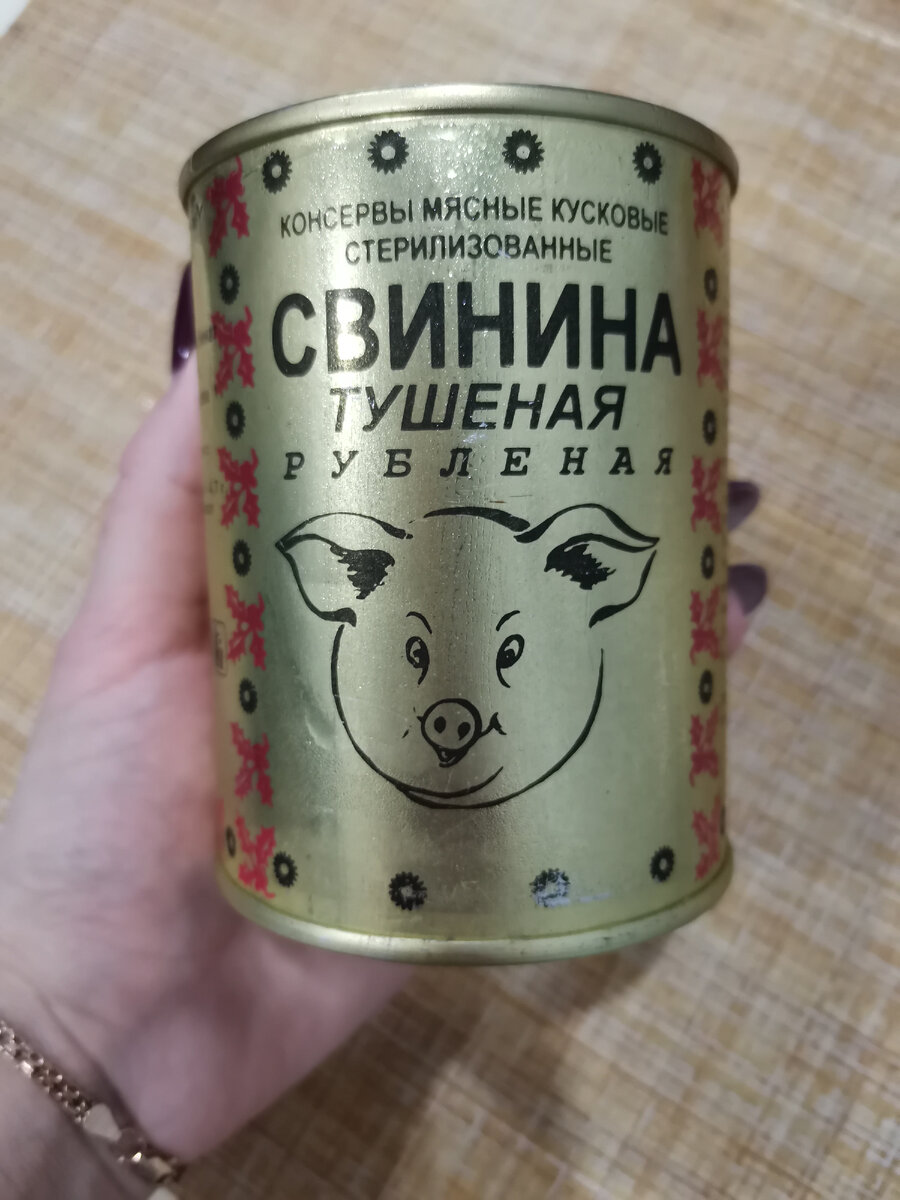 Добрый день, друзья! 🤗 Сегодня у нас на повестке дня программа "Контрольная закуска" Ой, то есть закупка! 😄 Тестируем тушенку из славной Белоруссии. Напомню, что муж купил баночку на пробу в супермаркете в Минске за 3 рубля с небольшим. В переводе на наши деньги она стоит примерно 110 рублей. Поехали! Сначала обратим внимание на внешний вид упаковки. Написано всё по-русски) Где-то я слышала, что на тушенке не должно быть именно слова "тушёнка", должно быть написано "свинина тушёная" или "говядина тушёная". Поэтому первый пункт наша баночка прошла😉 Переходим к составу. Вполне приличный, по-моему. Нет всяких Е-шек и усилителей вкуса. Меня только смущает мука пшеничная, причём она реально чувствовалась в продукте. Произведена эта тушёнка действительно в Белоруссии, ни откуда не привезена,если верить этикетке. Открываем🥫 Запах выраженный мясной, но мясо наложено не до краёв, как, допустим, у ермолинской тушёнки. Это я уже придираюсь, наверное😊 Выложим содержимое банки на таре