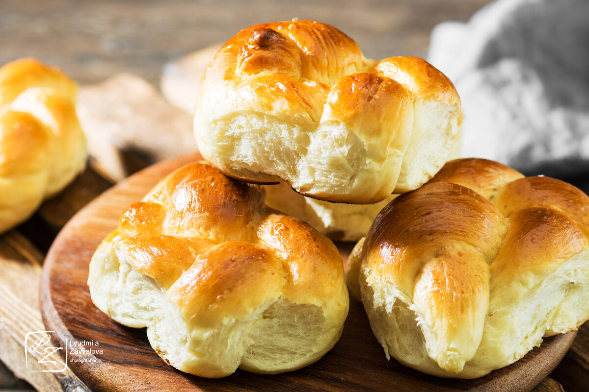 Иногда думаю, что же приготовить к чаю, и сразу вспоминаю, что у меня есть очень простой рецепт булочек, с которым сейчас с удовольствием поделюсь с вами. Ингредиенты: Мука - 600 г Дрожжи - 11 г (сухие) Молоко (теплое) - 250 мл Масло сливочное - 100 г Сахар - 1,5 ст.л Соль - 0,5 ч.л Яйца - 1шт. (для смазывания булочек) Вода (теплая) - 50 мл (для сиропа) Сахарная пудра (по желанию) Приготовление: 1. В теплое молоко высыпаем дрожжи, добавляем 1 ст.л сахара, соль, перемешиваем венчиком. 2. Сливочное масло натираем на крупной терке и хорошо смешиваем со смесью. 3. Просеянную муку порциями добавляем в смесь, периодически перемешивая ложкой. 3. Замешиваем тесто (оно не должно липнуть к рукам), скатываем в шар, обмазываем подсолнечным маслом, накрываем влажным полотенцем или пищевой пленкой. Оставляем в теплом месте на 1 час. 4. Выкладываем тесто на стол, муку не добавляем, немного обминаем и оставляем еще на 30 минут. 5. Сворачиваем тесто в жгут и нарезаем на небольшие кусочки. 6. Кусочки ск