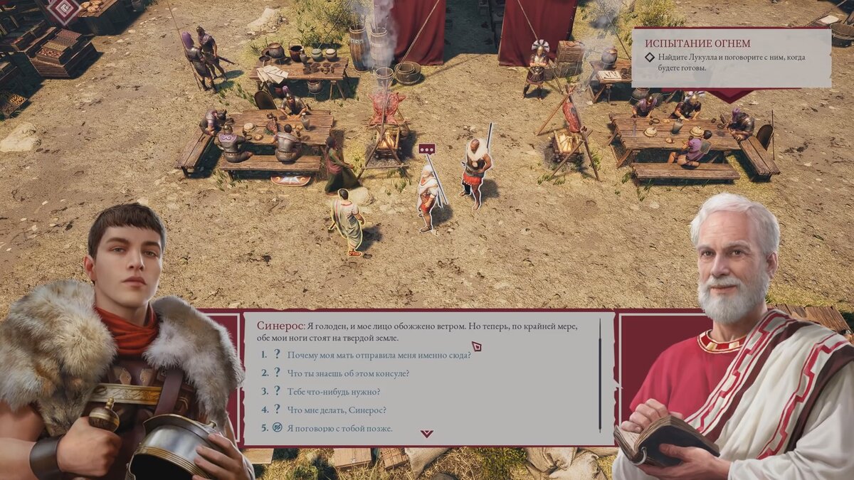 Завязка сюжета вполне типичная для Рима: главный герой – младший ребёнок в влиятельной плебейской семье, которая после убийства отца оказывается в весьма шатком положении. Вы последний шанс рода. Поэтому, спасения ради, главный герой отправится в Малую Азию, где вовсю бушует война с понтийским царем Митридатом. Да, на войне безопаснее чем в самом Риме. В попутчики вам выдадут молодого Гая Юлия Цезаря, раба философа, свободного гладиатора и центуриона. Компания скажу вам та еще.
