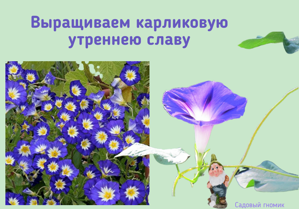 Карликовая утренняя слава, достигающая 30-45 см, "Голубое Очарование", производит голубые цветы с ярко-желтым и белым горлом с начала лета до поздней осени. Размер и раскидистый рост делают растение подходящим для контейнеров, бордюров или в качестве почвопокровного. Известная также как кустовая утренняя слава, утренняя слава "Голубое Очарование" является недолговечным многолетником в зонах 9-10 Министерства сельского хозяйства, но обычно выращивается как однолетник. Требования к выращиванию Утренняя слава переносит практически любую среднюю, хорошо дренированную почву, включая песок или суглинок. Она предпочитает относительно нейтральную почву с pH от 6,0 до 8,0. Карликовая утренняя слава лучше всего цветет на ярком солнце, но в жарком климате растению полезно полутень. Если это небольшое растение не выращивается в качестве почвопокровного, ему не помешает шпалера или другая опора. Посадка Вы можете посадить семена цветка в помещении за четыре-шесть недель до наступления последних с