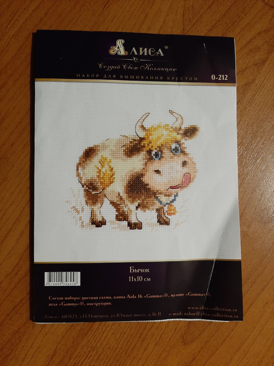 Здравствуйте всем подписчикам и случайным посетителям моего канала. Встретили мы Новый год, проводили Старый, а китайский новый год по-прежнему еще в правах. Насколько мне известно, 01.02.2022 г. китайцы станут праздновать новый год и будут провожать год Быка, встречая год Тигра. В общем, в связи с этими событиями мне бы хотелось вас "познакомить" со своей небольшой вышивкой в тему года Быка. Просто очаровашка-бычок. Как обычно, в наборе имелось всё необходимое для немедленного претворения бычка в жизнь. Мне потребовалось 6 дней, поскольку вышит он был в декабре, в предпраздничные недели, когда предновогодняя и предрождественская суета охватывает, как мне представляется, большую часть населения земного шара. Кроме того, на канве 16 каунта я вышивала впервые, она меньше 14ой, с которой мне приходилось ранее работать. Ниже несколько фотографий отшива. Мне кажется, наблюдать отшив через галерею фотографий всегда очень интересно, словно сам выполняешь эту работу. Вот такой чудесный малыш