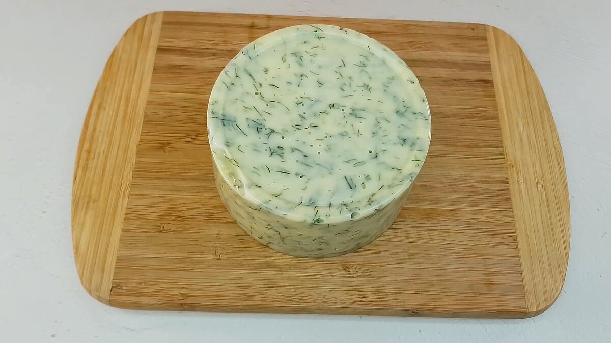 Сыр – полезный продукт, в котором содержится много белка. Настоящий сыр можно легко приготовить дома. Приготовим домашний сыр с зеленью, используя всего 4 основных ингредиента. Ингредиенты: Рецепт домашнего сыра из творога и молока В 1 литр жирного молока добавляем 1 кг рассыпчатого творога. Творог брать не меньше 5%, лучше пожирнее – так готовый сыр будет вкуснее; Ставим кастрюлю на плиту. Нагреваем смесь, постоянно помешивая. Ждем, пока начнет отделяться сыворотка; Когда сыворотка появилась, можно выключать кастрюлю; Подготовить глубокий дуршлаг. Накрыть его марлей, лучше в несколько слоев; Процеживаем смесь. Сыворотка нам не нужна. Подождите пару минут, пока вода стечет. Дальше можно помочь руками и отжать оставшуюся влагу; Готовую массу перекладываем в кастрюлю. Добавляем 1 яйцо; В микроволновке или на водяной бане растопить 50 гр сливочного масла. Остудить и влить к творогу с яйцом; В наш будущий сыр добавить 1 ч.л соли, 1 ч.л разрыхлителя. Хорошо разминаем смесь вилкой. Лучше не