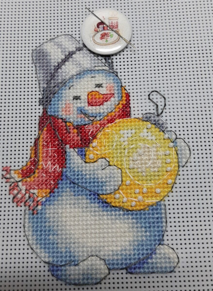 Здравствуйте всем подписчикам канала и случайно заплутавшим в просторах сети. Всем всегда рада. Вы знаете, если чем-либо увлекаться, то, на мой взгляд, должна быть фиксация своих результатов. Иначе кажется, что и не было ничего. Например, если заниматься спортом, то нужно обязательно вести дневник своих достижений за тренировку. Если нравится готовить, то обязательно фотографировать. И так со всем. С вышивкой, конечно, всё проще - сразу виден результат. Ну, а если работа будет подарена? Обязательно нужно фото. Но еще прекраснее, опять-таки на мой субъективный взгляд, вести отсчет своих готовых работ. Я занимаюсь этим впервые и мне это очень нравится. Вот поэтому сегодня хочу поделиться своей первой завершенной работой этого года - снеговичком с гирляндой. Сразу показываю результат, поскольку фотографий мало, а превью под рукой нет. Этот чудесный снеговичок был отшит за 4 дня, на пластиковой канве, еще не оформлен до конца (планируется быть игрушкой, поэтому задняя часть тоже должна быт