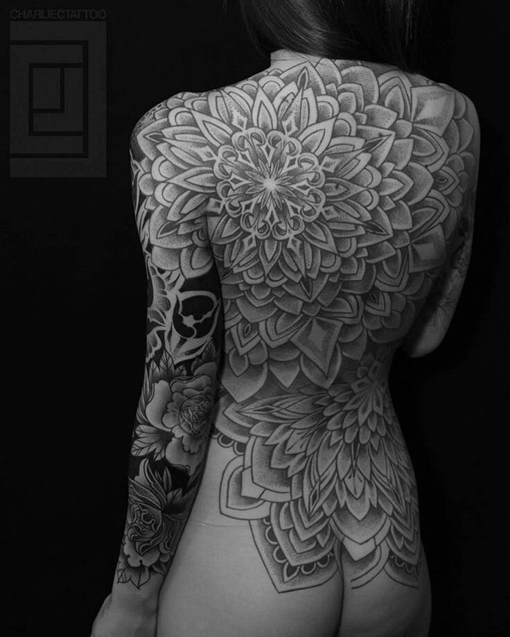 Дотворк (англ. dotwork – "точечная работа") – это уникальный стиль татуировок, который значительно отличается от всех остальных. Главная особенность стиля Вlackwork tattoo в том, что в его основе лежит своеобразная точечная технология. Так, вся татуировка состоит из точек. Как правило, все подобные работы имеют большой размер. Это объясняется тем, что рисунок из точек мелкого размера смотрятся некрасиво. В стиле тату дотворк делают весьма сложные рисунки, чаще всего геометрических форм. Плотность цвета, контрастность и интенсивность создается при помощи точек. По плотности их размещения зависит цвет татуировки. Стоит отметить, что профессионалы могут сделать подобную татуировку. Этот стиль не может быть универсальным, он исключительно индивидуален. Так, мастер должен иметь свой личный подход к работе и особый профессионализм. На территории России dotwork только развивается. Поэтому, если вы решили сделать тату в таком стиле, то Вам нужно поискать хорошего мастера. Татуировки в стиле д