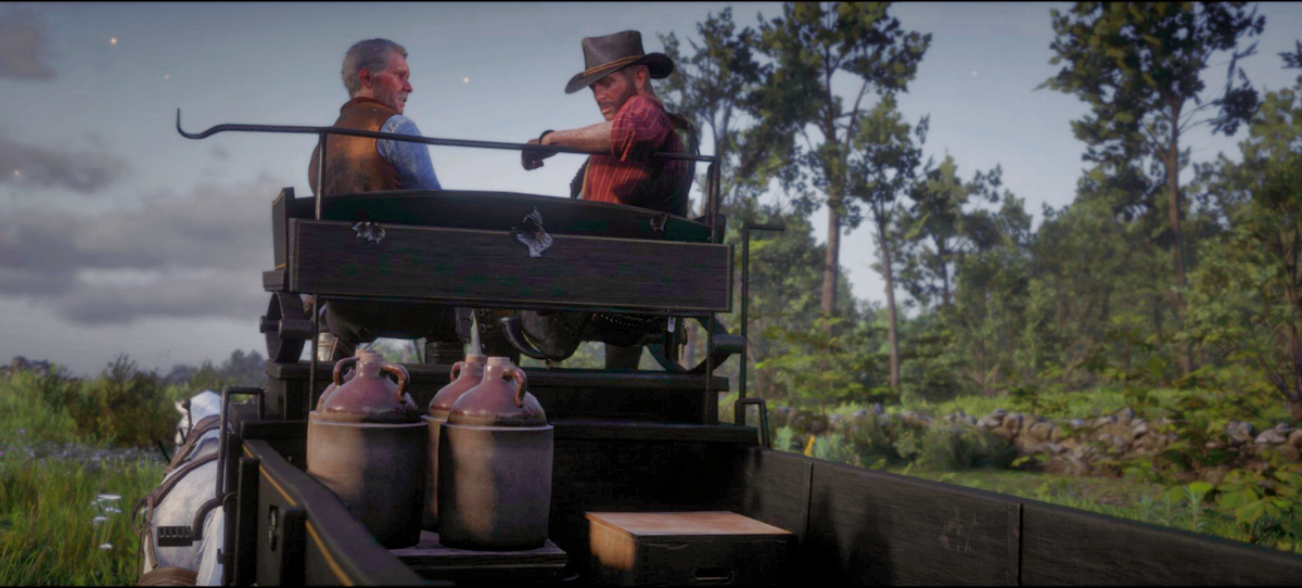 … Так что же дальше произошло с той самой повозкой с самогоном, которую Датч «отжал» у помощника шерифа Грея после ареста самогонщиков в квесте «Американское самогоноварение»? В лагере на полуострове Клеменс Эбигейл сообщает Артуру, что его ожидает Хозия. Отправившись на место, Артур видит ту самую повозку с самогоном – оказывается, Хозия решил продать его тем самым Брейтуэйтам, которые «крышевали» его же изготовление… В поместье Брейтуэйтов их сперва встретили неласково, но мамаша Брейтуэйт обладала непререкаемым авторитетом и быстро заткнула рты своим возмущённым сыновьям. Мало того, что она выкупила у Хозии свой же самогон, так ещё и дополнительно заплатила за то, чтобы друзья повезли его в Роудс и бесплатно раздали в салуне, принадлежавшем семейству Греев. В отличие от Артура, Хозия с восторгом принял эту затею и на пути в Роудс заранее распределил роли: себе он взял имя Мелвина, а Артура выставил слабоумным братом – Фэнтоном. Подъехав к заднему крыльцу салуна, Хозия поручил Ар