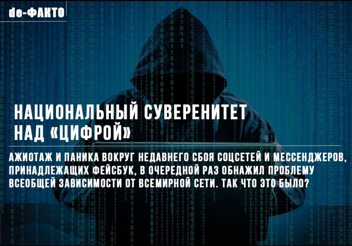 Ажиотаж и паника вокруг сбоя соцсетей и мессенджеров Фейсбук, произошедшего в октябре 2021 года, в очередной раз обнажил проблему всеобщей зависимости от всемирной сети.Ажиотаж и паника вокруг сбоя соцсетей и мессенджеров Фейсбук, произошедшего в октябре 2021 года, в очередной раз обнажил проблему всеобщей зависимости от всемирной сети.