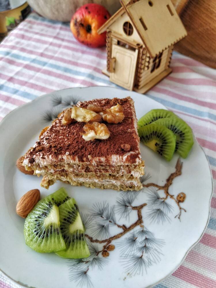 #быстро Интересная интерпретация любимого десерта ❤️ такой вот тортик получился . За вдохновение спасибо автору сайта Кукпад Ирина Прушинская Ингредиенты: сыворотки, овсяной муки, соды, яйца;, Для крема, творожного сыра из кефира, банана, кофе для пропитки, .какао для посыпки Способ приготовления: Готовим овсяные блинчики. У меня их 3 получилось. В сыворотку добавляем соду, идёт реакция, яйца, перемешиваем. Добавляем муку, хорошо перемешиваем. Варим кофе. Оставляем остывать. Выпекаем блинчики на хорошо разогретой антипригарной сковороде с двух сторон под закрытой крышкой на медленном огне. Даём остыть. Готовим крем. Банан пюрируем, смешиваем с творожным сыром. Собираем тортик. Пропитываем блинчики кофе. Смазываем кремом. Посыпаем какао. Ставим в холодильник на несколько часов, лучше на ночь. Разрезаем и наслаждаемся неимоверным вкусом. Приятного аппетита))).