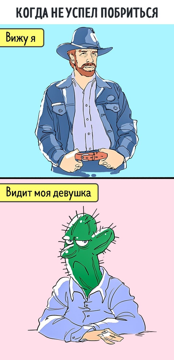 Это нарисованные мини истории знакомы каждому, кто хоть раз был в отношениях. Все комиксы этой серии сделаны на два кадра, в первом позиция парней, а во втором как эту же ситуацию видит его девушка. Уже звучит многообещающе, ведь все мы знаем, какими забавными могут быть такие ситуации.